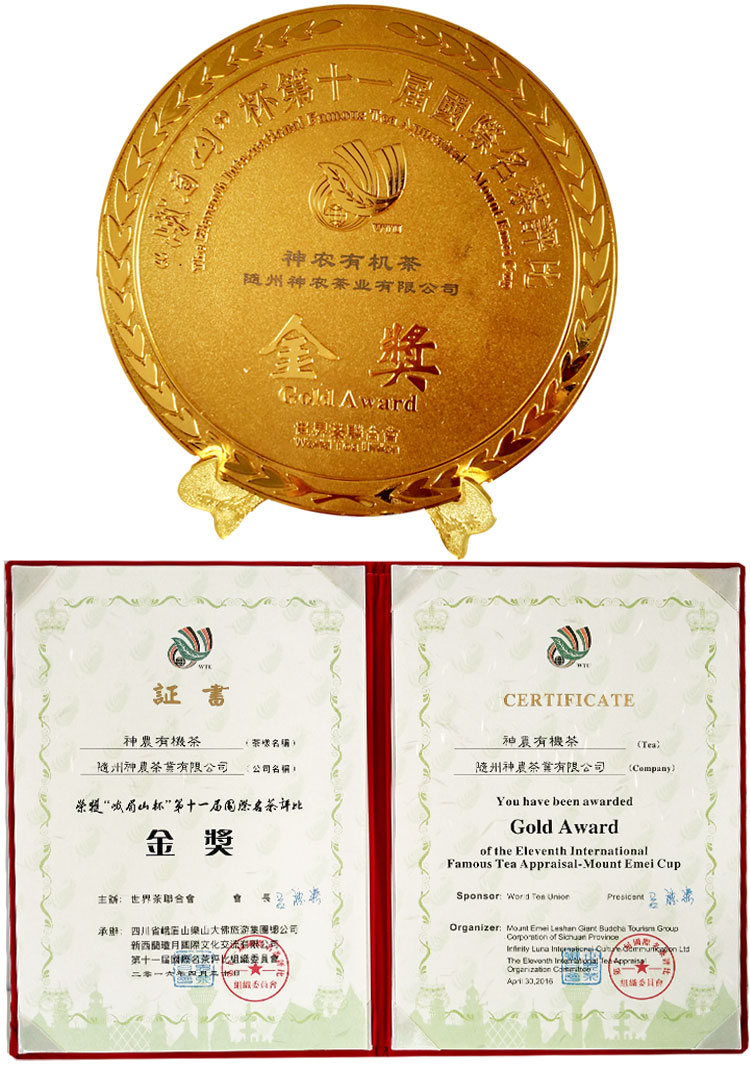 神農(nóng)有機(jī)茶獲“峨眉山杯”國(guó)際名茶評(píng)比金獎(jiǎng)
